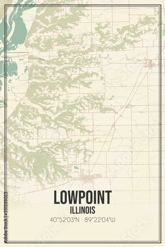 © Rezona, Fototapeta premium Retro US city map of Lowpoint, Illinois. Vintage street map.