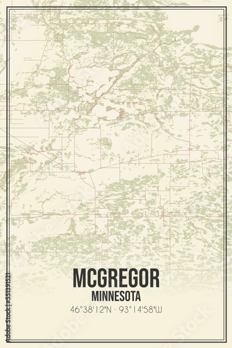 © Rezona, Fototapeta premium Retro US city map of Mcgregor, Minnesota. Vintage street map.