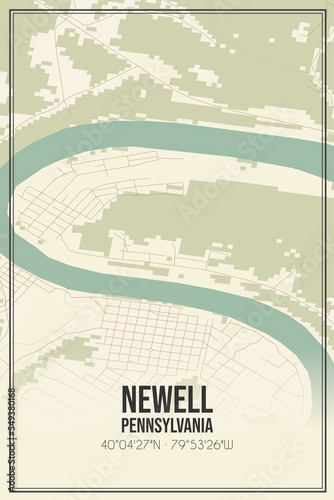 Fototapeta premium Retro US city map of Newell, Pennsylvania. Vintage street map.