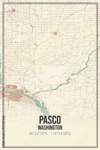 © Rezona, Fototapeta premium Retro US city map of Pasco, Washington. Vintage street map.
