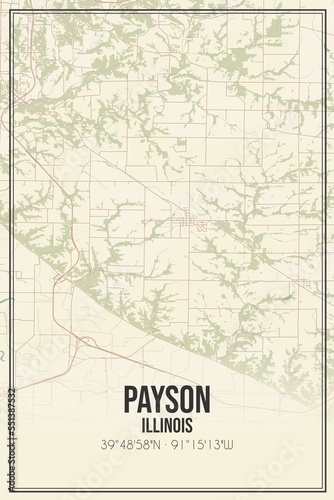 Obraz premium Retro US city map of Payson, Illinois. Vintage street map.
