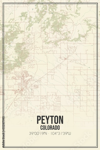 © Rezona, Fototapeta premium Retro US city map of Peyton, Colorado. Vintage street map.