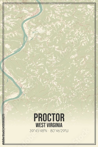 Obraz premium Retro US city map of Proctor, West Virginia. Vintage street map.