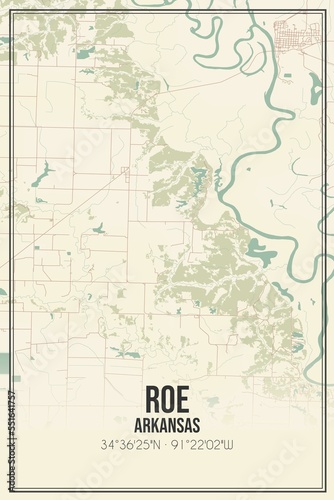 © Rezona, Fototapeta premium Retro US city map of Roe, Arkansas. Vintage street map.
