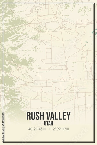 © Rezona, Fototapeta premium Retro US city map of Rush Valley, Utah. Vintage street map.