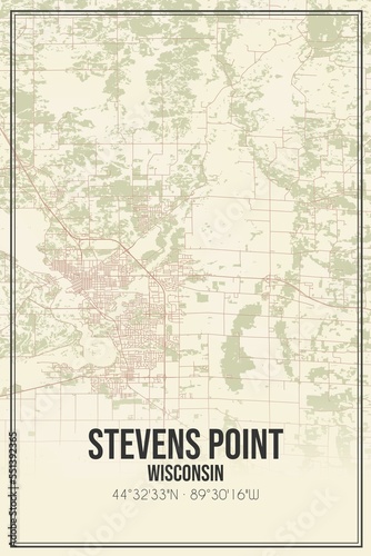 © Rezona, Fototapeta premium Retro US city map of Stevens Point, Wisconsin. Vintage street map.