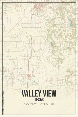 © Rezona, Fototapeta premium Retro US city map of Valley View, Texas. Vintage street map.