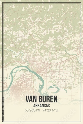 Obraz premium Retro US city map of Van Buren, Arkansas. Vintage street map.