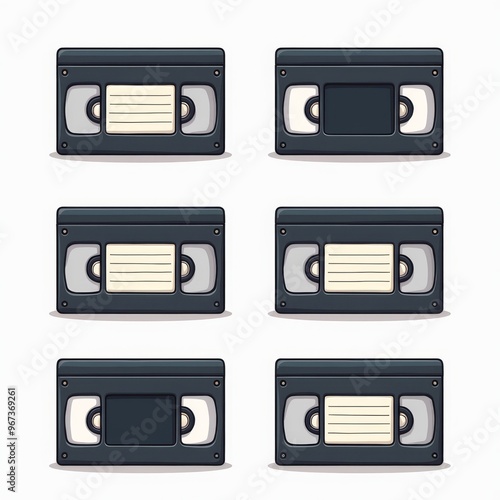 Fototapeta premium Retro VHS Cassettes Illustration – Nostalgic Vintage Tapes Icon Set for Media and Technology Design