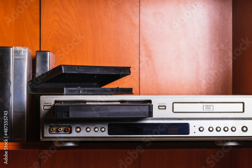 Obraz premium retro vhs tape player, wearing a jacket in the style of the 90s,