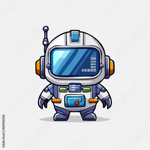 © Syahban, Fototapeta premium Retro vintage blue tin toy robot with a suitcase, isolated vector cartoon illustration