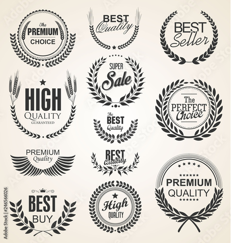 Fototapeta premium Retro vintage golden laurel wreaths sale collection vector