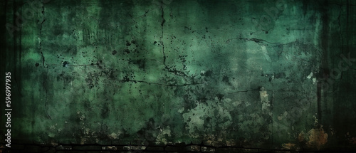 Fototapeta premium retro vintage green grunge texture dark black background. Generative AI