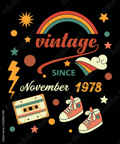 © Nujhat, Fototapeta premium Retro Vintage November 1995 Birthday Design with Rainbow and Cassette Tape