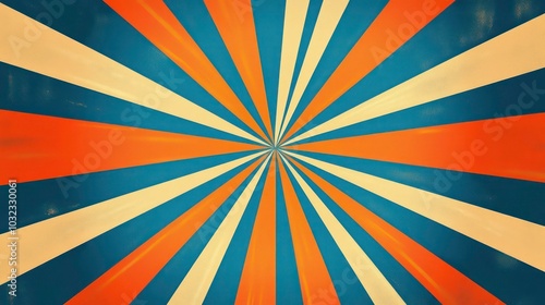 Fototapeta premium Retro Vintage Sunburst Pattern with Red, Blue, and Yellow Stripes.