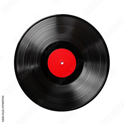 © Bismillah, Fototapeta premium Retro vinyl record with a red label on a black background