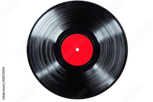 Fototapeta premium Retro vinyl record with a vibrant red center, perfect for music-themed...