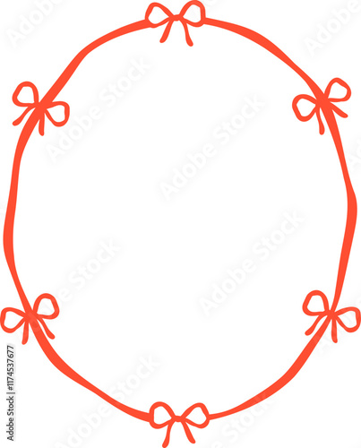 © Natsicha, Obraz premium Retro Wavy Oval Frame with bow Valentine Squiggle Flat Design