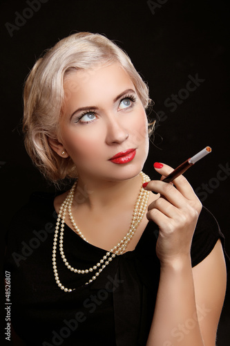 Obraz premium Retro Woman Portrait with cigarette in vintage image