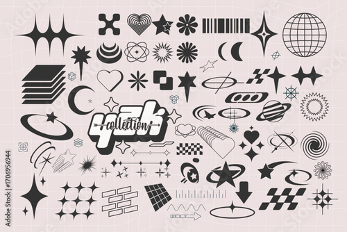 Fototapeta premium Retro Y2K Elements Pack | Digital Stickers & Aesthetic Vector Shapes