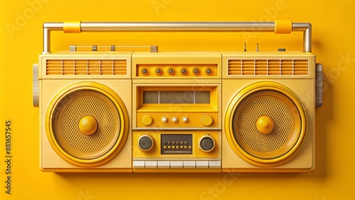 © Manatsavee, Fototapeta premium Retro yellow boombox radio recorder with cassette deck and speakers illustration in simple flat style with nostalgic 80s vibe.