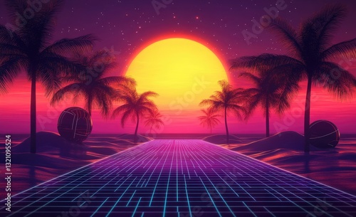 © hit.std, Fototapeta premium Retrofuturistic Sunset Beachscape