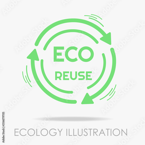 © Phantasm, Fototapeta premium Reuse rotate sign in linear style with green arrows on grey background. Garbage recycling and reusing icon for clean Earth. Ecology flat symbol for business with green color. Eps 10 vector