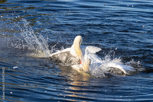 © Bruno Mader, Obraz premium Revierkampf zweier Höckerschwäne