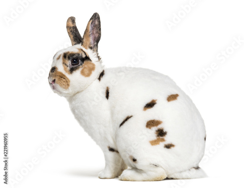 © Eric Isselée, Fototapeta premium Rex Dalmatian Rabbit, sitting against white background