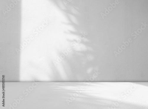 Fototapeta premium rey wall shadow background kitchen floor white abstract studio concrete table white texture light texture mockup product marble room display plant cement minimal shelft bar leaves backdrop