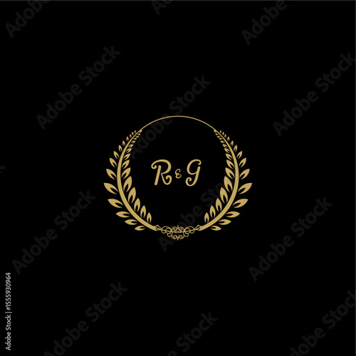 © desi, Naklejka premium RG beautiful feminine and elegant wedding monogram initial logo with circle floral gold