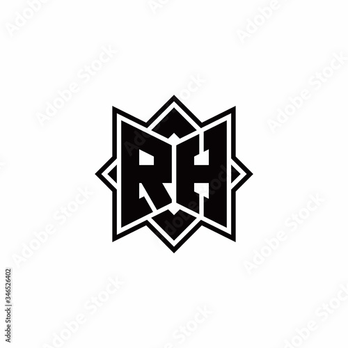 Fototapeta premium RH monogram logo with square rotate style outline