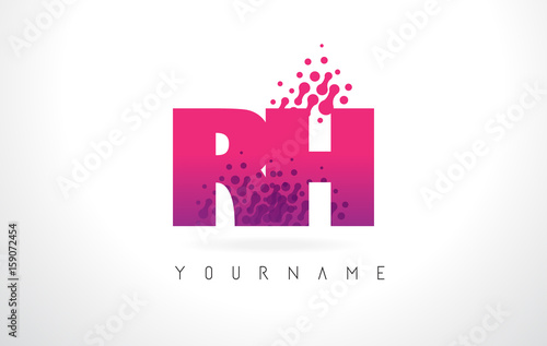 Fototapeta premium RH R H Letter Logo with Pink Purple Color and Particles Dots Design.
