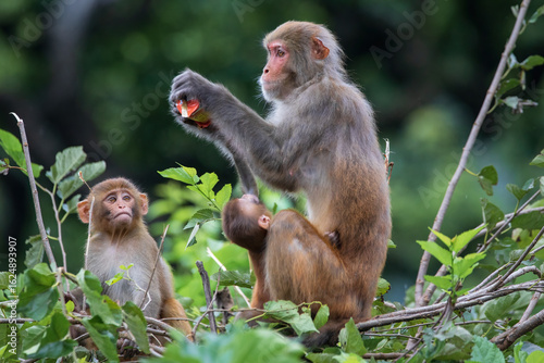 Fototapeta premium Rhesus Macaque or Rhesus Monkey in Swoyambhu Temple, Kathmandu, Nepal....