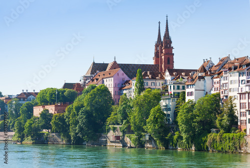 Fototapeta premium Rhine waterfront with Basel Minster, Switzerland