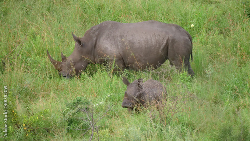 © TravelTelly, Obraz premium Rhino and her young