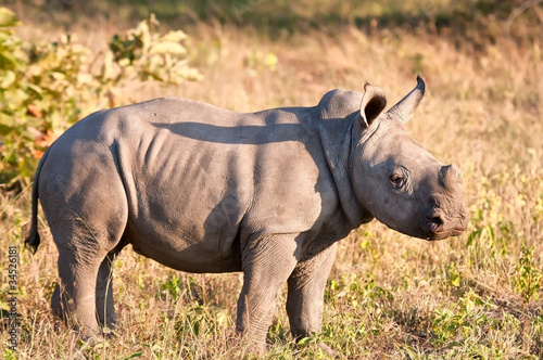 © Alta Oosthuizen, Naklejka premium Rhino calf in nature green grass