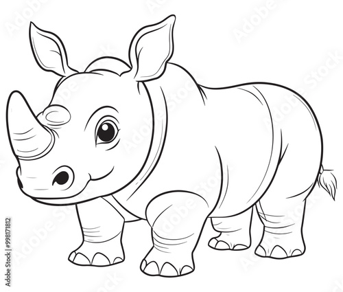 © Md.Riaz, Fototapeta premium Rhino cartoon coloring page, Outline rhino, Silhouette line art rhino