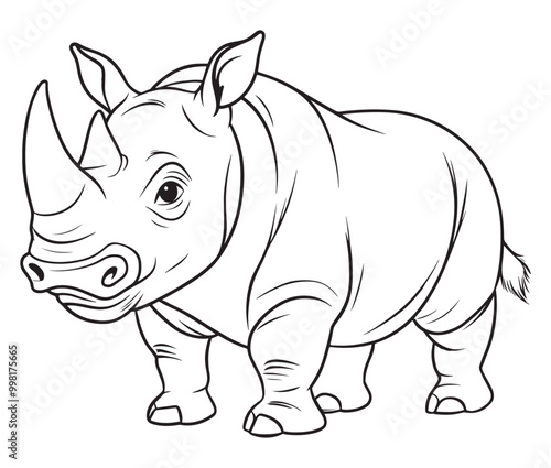 Fototapeta premium Rhino cartoon coloring page, Outline rhino, Silhouette line art rhino
