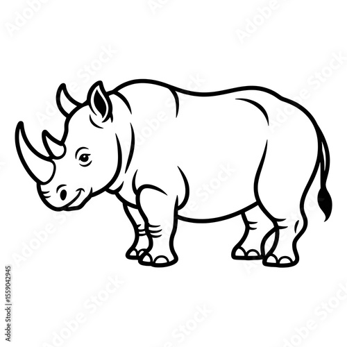 © Starter, Fototapeta premium Rhino doodle with second horn outline, transparent background.