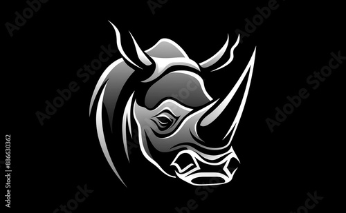 © Rassamee, Fototapeta premium Rhino head logo, black and white, white background