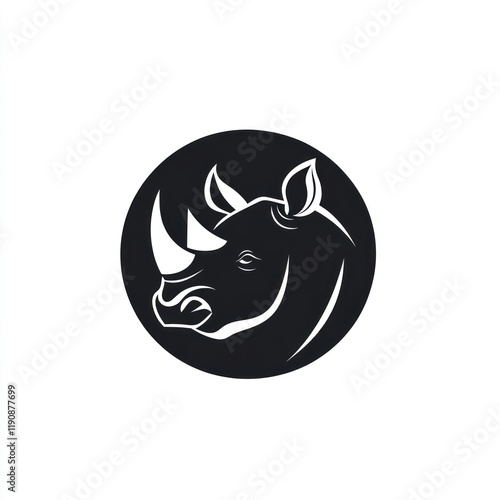 Fototapeta premium Rhino head silhouette, dark circle, white background, logo design