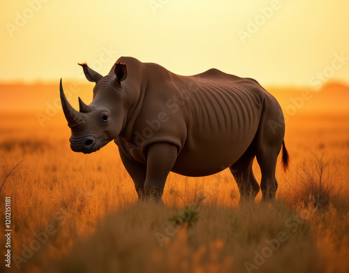 © fast high definition, Fototapeta premium rhino in sunset