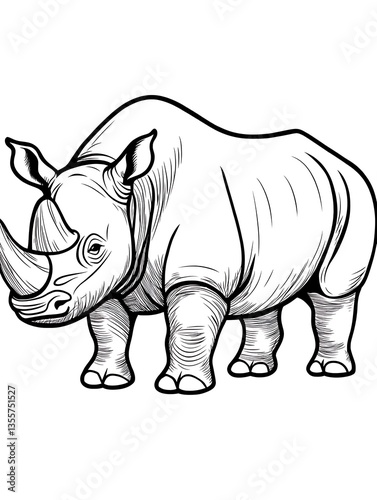 © tisubasah, Fototapeta premium Rhino Line Art Illustration.