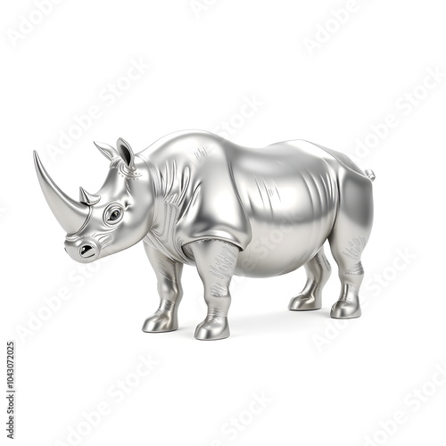 © Tark, Obraz premium Rhino metallic 3D image of silver rhino on white background. Generative AI