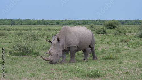 Fototapeta premium Rhino mother and young grazing