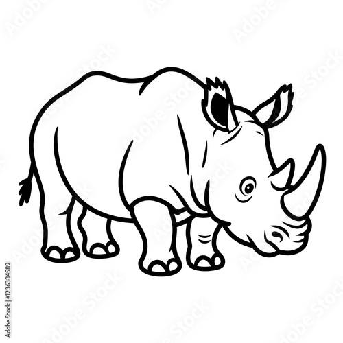 © Muneeza, Fototapeta premium rhino on white background coloring page