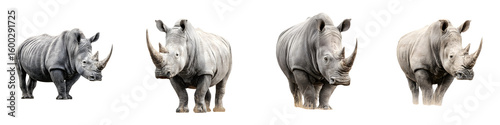 Fototapeta premium Rhino Portraits on White - Set of Four Isolated Rhinoceros
