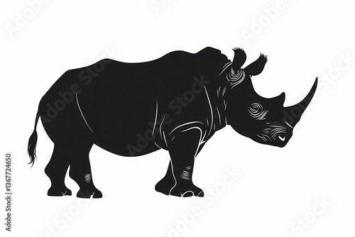 © Hafiz, Fototapeta premium Rhino silhouette on white background vector design