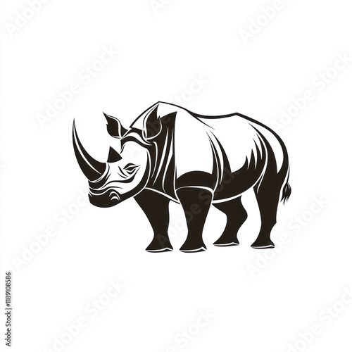 Fototapeta premium Rhino, standing, African savanna, wildlife graphic, logo design